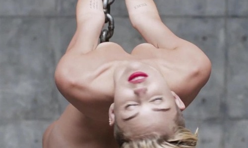 Of course the drug addled minds of the heathen masses completely missed the message in Miley Cyrus’ powerful video, which (as you can see in the screenshots below) features Miley swinging naked on a wrecking ball.