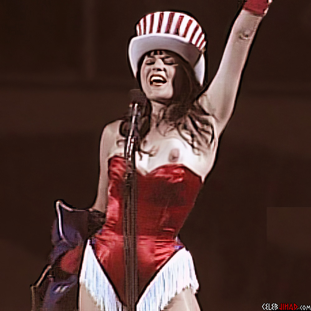 Despite Lucy Lawless’s status as a deviant freak of the highest order, these outtakes, alongside her infamous full tit slip while butchering the national anthem at a hockey game (captured in the damning photo below), were the only fleeting glimpses of her naked body in the 1990s.