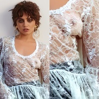 Isabela Merced Nude Tits In A See Thru Top